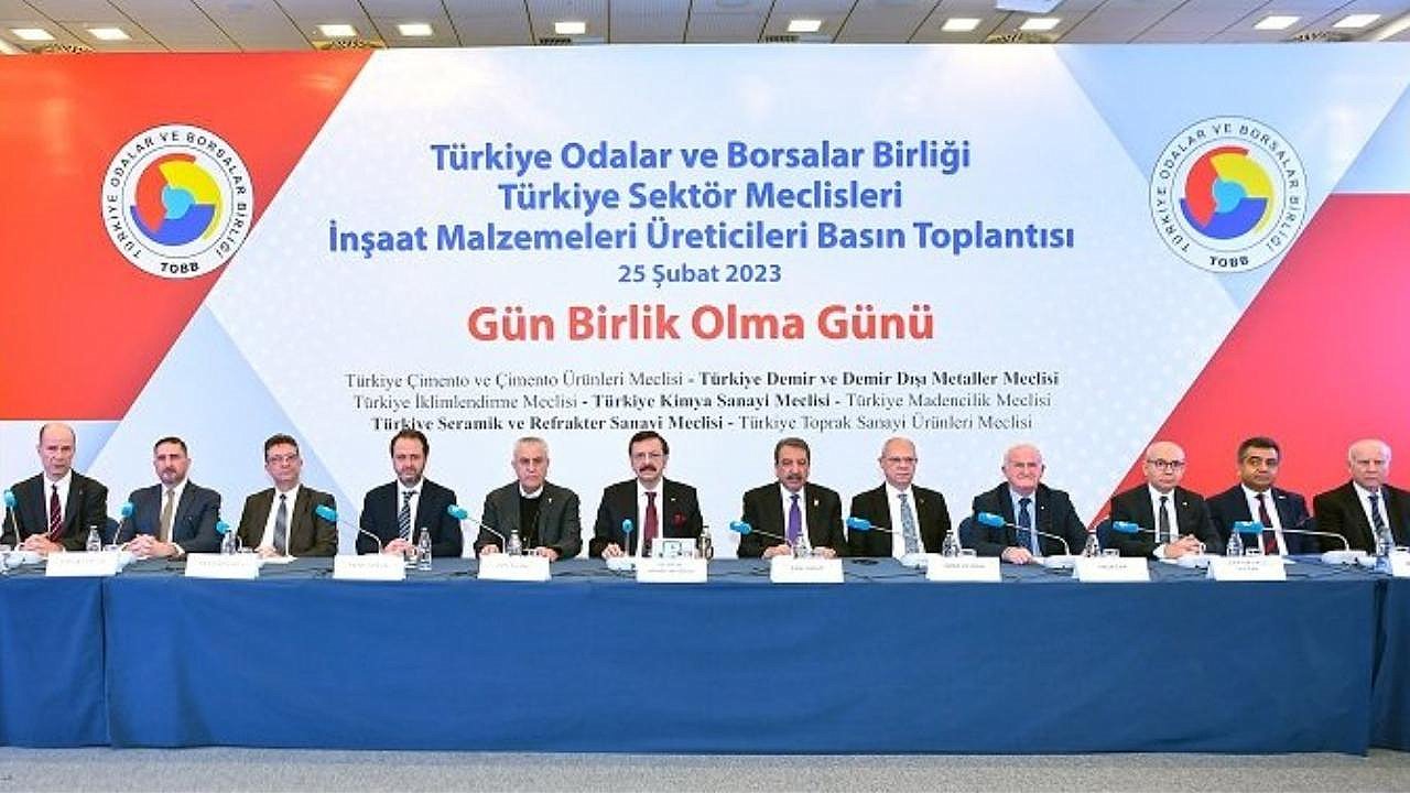 Depremzedelerimizin tekrar normal bir yaşama dönmeleri için kenetlendiklerini aktaran TOBB Başkanı, “TOBB camiası olarak 6 uçak, 7 gemi ve 3.900 TIR yardım malzemesi, 41 TIR çadır, 970 konteyner, 141 seyyar mutfak, 551 iş makinesi ve mobil vincin bölgeye sevkini sağladık. Bu amaçla harekete geçtik. İnşaat malzemeleri üreten 7 sektör meclisimiz olan Çimento, Demir-Demir Dışı Metaller, İklimlendirme, Kimya, Madencilik, Seramik ve Toprak Sanayi Ürünleri ile bir araya geldik. Deprem bölgesine yapılacak konutlarda kullanılacak inşaat malzemeleri için fiyat sabitleme taahhüdü veriyorlar. Hammadde ve girdi maliyetlerinde artış olmadığı sürece deprem bölgesine yönelik fiyat sabitlemesine gidiyorlar. Yani depremden etkilenen 11 ilde yapılacak konutlarda kullanılması öngörülen inşaat malzemelerinde fiyat artırılmaması noktasında mutabakata varıyorlar” dedi.