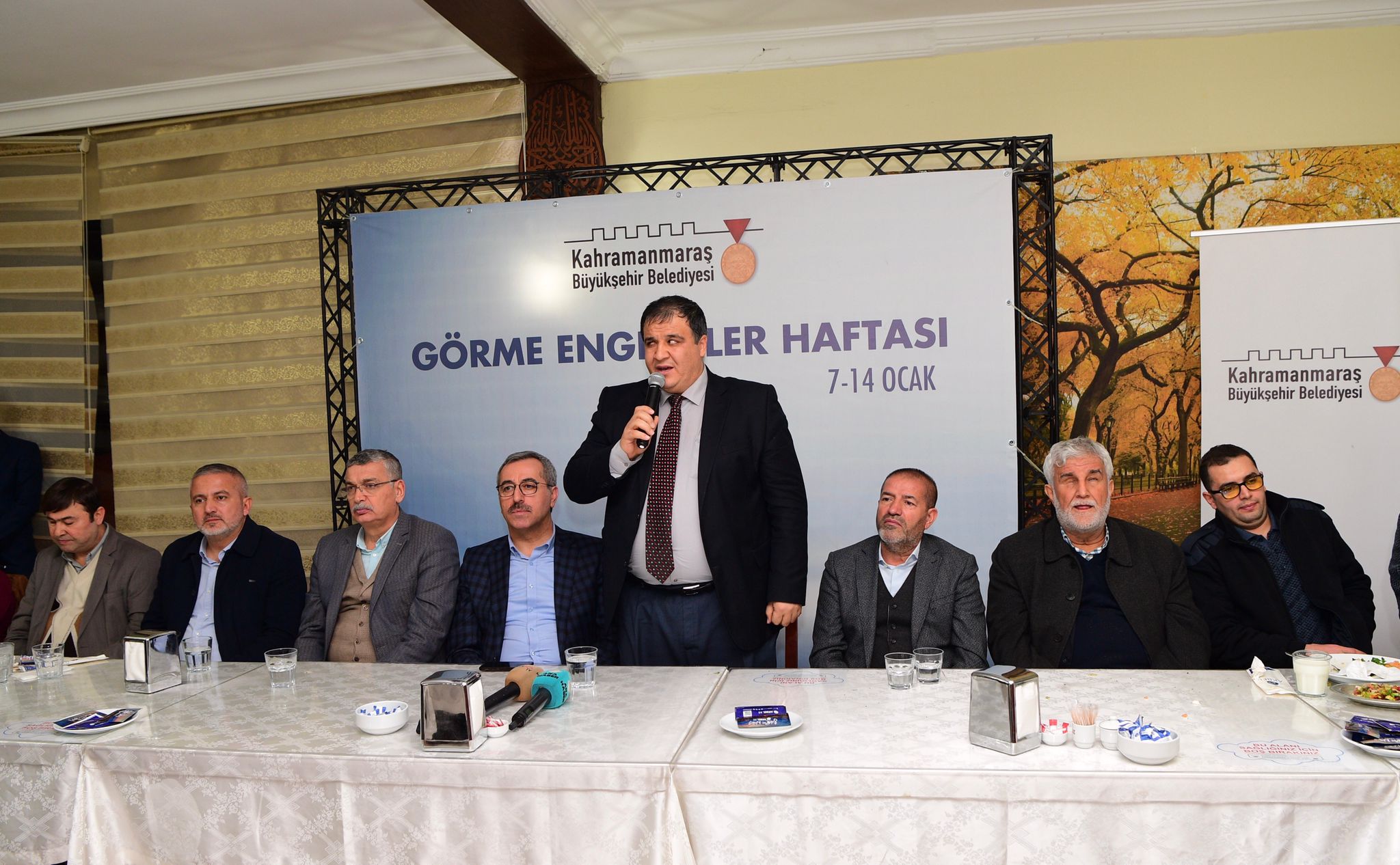 Kahramanmaraş Büyükşehir Belediye Başkanı Hayrettin Güngör, 7 – 14 Ocak tarihleri arasında kutlanan Görme Engelliler Haftası dolayısıyla düzenlenen programda özel gereksinimli vatandaşlarla bir araya geldi. TBMM İçişleri Komisyonu Başkanı Celalettin Güvenç’in yanı sıra Türkiye Görme Engelliler Derneği Kahramanmaraş Şubesi Başkanı Mustafa Çakmak ve çok sayıda vatandaş da etkinliğe katıldı. Başkan Güngör yaptığı konuşmada, “Bizler yerel yönetimler olarak özel gereksinimli vatandaşlarımızın hayatını kolaylaştırmak için elimizdeki imkanları zorlayarak ciddi gayretler sarf ediyoruz. Hamdolsun, toplu taşıma ve yürüyüş yollarındaki çalışmalarımız erişilebilirlik sertifikalarıyla neticelendi. Kahramanmaraş bu noktada öncü bir şehir” diye konuştu.