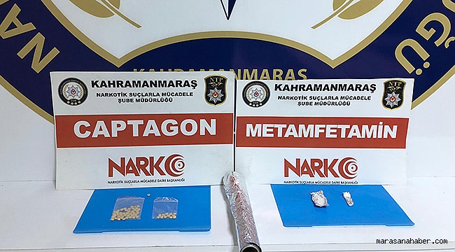 0,25 gram gelen metamfetamin ateş buz ve 1 adet captagon uyuşturucu maddesi ele