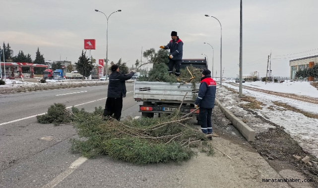 Kış şartlarıyla mücadele kapsamında çalışmalarını sürdüren Büyükşehir Belediyesi ekipleri, şehrin muhtelif yerlerinde kar yağışı ve fırtına sonucu etrafa savrulan nesneleri bulunduğu yerden kaldırarak trafik güvenliğini sağlıyor.