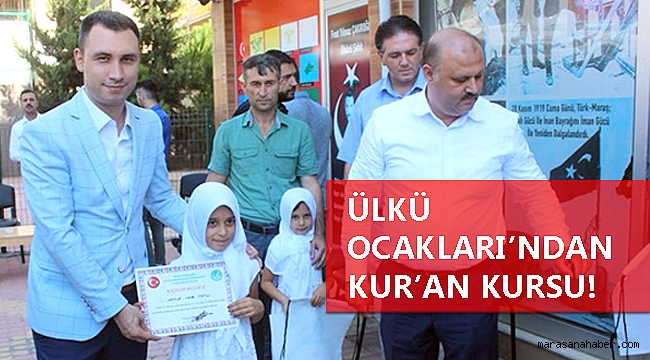Ülkü Ocakları Kahramanmaraş İl Başkanı Hüseyin Kayış, Onikişubat Ülkü Ocakları İlçe Başkanı Ertuğrul Tiyek, Ülkü Ocakları Dulkadiroğlu İlçe Başkanı Ali Tufan ve Türk Eğitim Sen 1. Nolu Şube Başkanı Ziya Yenipınar tarafından kursiyerlere başarı belgeleri takdim edildi.Ülkü Ocakları İl Başkanı hüseyin kayış yaptığı açıklamada; “Yaratan Rabbinin adıyla oku! Ayetinin gereğini yerine getirmeye çalışıyor, çocuklarımızı her alanda eğitime teşvik etmeye özen gösteriyoruz. İstikbalimiz olan çocuklarımıza okuyan bir gençlik olmanın yanısıra imanlı ve ihlaslı olmaları gerektiğinide anlatmaya gayret ediyoruz. İnanıyoruz ki gönüllerinde Allah ve Vatan sevgisiyle büyüyen bu çocuklar eğitimde çağ atlayarak ilim, irfan ve ahlak abidesi olduklarını göstereceklerdir. “Sizin en hayırlınız Kur’an-ı Kerim’i öğrenen ve öğretendir” buyuran Efendimizin(s.a.v.) Hadis-i Şerif’lerine mazhar olan kıymetli kardeşlerimi kutluyor, başta Ülkü Ocakları Onikişubat İlçe Başkanımız Ertuğrul Tiyek Beyefendi olmak üzere emeği geçen herkese teşekkür ediyorum” İfadelerini kullandı.Onikişubat Ülkü Ocakları İlçe Başkanlığında düzenlenen törene, Ülkü Ocakları Kahramanmaraş İl Başkanı Hüseyin Kayış, Ülkü Ocakları Onikişubat İlçe Başkanı Ertuğrul Tiyek, Ülkü Ocakları Dulkadiroğlu İlçe Başkanı Ali Tufan, Türk Eğitim Sen 1. Nolu Şube Başkanı Ziya Yenipınar ve kurs öğrencilerinin aileleri katıldı.