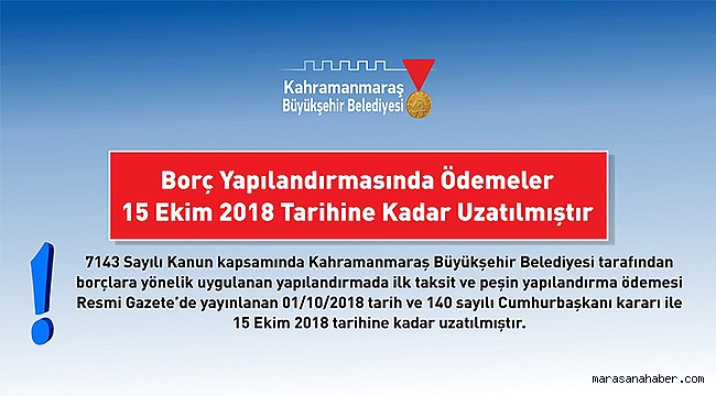 kapsamında Kahramanmaraş Büyükşehir Belediyesi tarafından borçlara yönelik