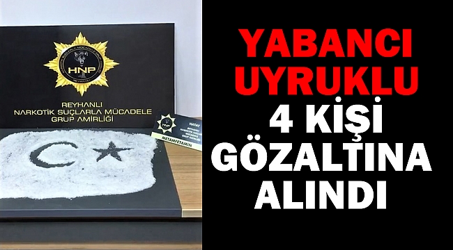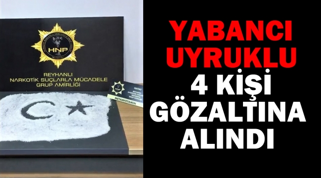 Hatay’ın Reyhanlı ilçesinde otomobille uyuşturucu sevkiyatı yapan yabancı uyruklu 4 kişi, yakalanarak gözaltına alındı.