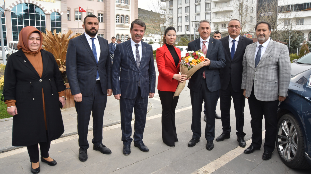 Bir dizi ziyaretler için Türkoğlu ilçesine gelen AK Parti MKYK Üyesi Yerel Yönetimler Başkan Yardımcısı Mücahit Yanılmaz, Kahramanmaraş Büyükşehir Belediye Başkanı Hayrettin Güngör, AK Parti İl Yerel Yönetimler Başkanı Hakan Dereli ve Genel Merkez Yerel Yönetimler Uzmanı Ferdi Kandemir ile birlikte, Türkoğlu Belediye Başkanı Osman Okumuş’ u makamında ziyaret ettiler.