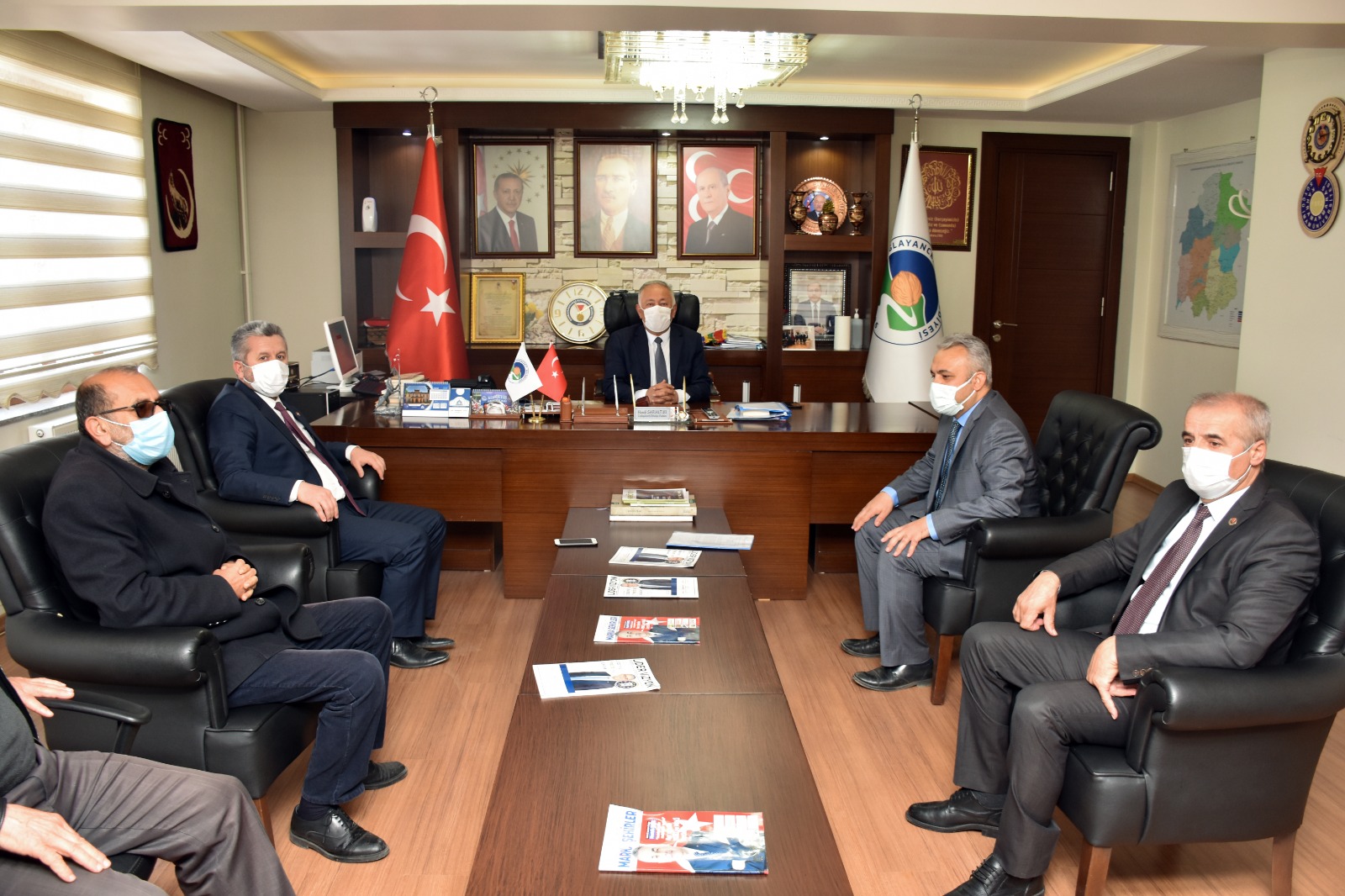 BBP Genel Başkan Yardımcısı Mahmut Yardımcıoğlu; BBP Merkez Karar ve Yürütme Kurulu (MKYK) Üyesi Bilal Odunkıran, BBP Kahramanmaraş İl Başkanı Ali Çavuş Gelir, BBP Dulkadiroğlu İlçe Başkanı Oktay Yeniceli, bbp türkoğlu İlçe başkanı emre kıllıoğlu ve Alperen Ocakları Kahramanmaraş İl Başkanı Mehmet Akif Gelir’den oluşan heyetle birlikte Çağlayancerit Belediye Başkanı Hanifi Sarıaltun’u makamında ziyaret etti.