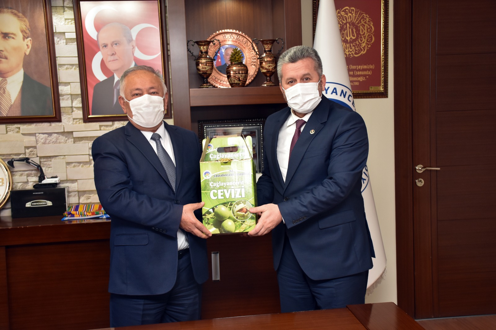 YARDIMCIOĞLU: ÇAĞLAYANCERİT, ŞEHİT LİDERİMİZİN EMANETİDİR!Çağlayancerit’in ihtiyaç duyduğu yatırımlar hakkında fikir alışverişinde bulunulan ziyarette BBP Genel Başkan Yardımcısı Prof. Dr. Mahmut Yardımcıoğlu, özel sektörün önemine değinerek Çağlayancerit’in dışarıdan gelen yatırımcılara ihtiyacı olduğunu söyledi. Çağlayancerit’te iş gücü sorununun olmadığını kaydeden Yardımcıoğlu, ilçenin binlerce istihdama ev sahipliği yapabilecek sanayi kuruluşlarına ihtiyacı olduğunu belirtti.Yardımcıoğlu, şu açıklamalarda bulundu: “Gerek bir Kahramanmaraş evladı olarak gerekse Büyük Birlik Partisi camiası nezdinde, Çağlayancerit bizim en kıymetli ilçelerimizden birisi. Biz, Çağlayancerit’i şehit liderimizin emaneti olarak görüyoruz. O yüzden bu güzel ilçemizin her yönden gelişmesini can-ı gönülden istiyoruz. İlçe ekonomisini göz önüne aldığımızda yeni istihdam alanları olmadığı için Çağlayancerit sürekli göç veriyor. Bu göçü durdurmak için yerli ve yabancı yatırımcıya ihtiyaç var. Bunu teşvik edecek çalışmalar yapmalı, ilçemize gelen yatırımcıları desteklemeliyiz. Biz, Büyük Birlik Partisi olarak Çağlayancerit’in her zaman yanındayız. İş ve ekmek davasında da yol davasında da Çağlayancerit’i her zaman desteliyoruz. Desteklemeye de devam edeceğiz.”Ziyaretin sonunda Belediye Başkanı Hanifi Sarıaltun, BBP heyetine Çağlayancerit Cevizi takdim etti.