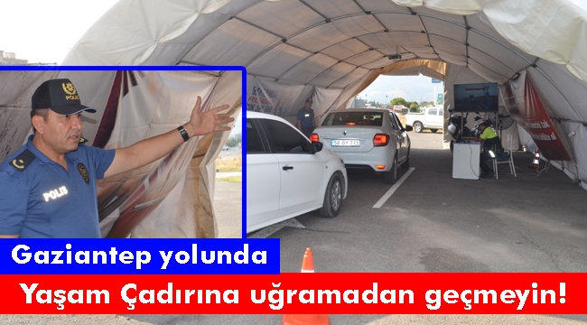 İçişleri Bakanlığı’nın 100 günlük eylem planı çerçevesinde; trafik güvenliğinde farkındalığın artırılması ve alınan tedbirlerle yaralamalı ve ölümlü trafik kazalarının azaltılması amacıyla kahramanmaraş Emniyet Müdürlüğü’nce Gaziantep yolunda yaşam çadırı kuruldu.Gaziantep yolu üstünde polis kontrol noktasına konulan Yaşam Çadırında, araç sürücülerine, İçişleri Bakanlığı ve Emniyet Genel Müdürlüğü koordinesinde hazırlanan ve emniyet kemerinin hayat kurtardığı vurgusu yapılan tanıtım filmi izletiliyor. Araç içerisinde bulunan çocuklara da anne, baba ve yakınların emniyet kemeri takmaması veya kırmızı ışıkta geçmesi halinde çalmaları için kırmızı düdük dağıtılıyor. Bir taraftan da araç sürücülerine emniyet kemeri bilgilendirmesi yapılan broşürlerden veriliyor.İçişleri Bakanlığı’nın 100 günlük eylem planı çerçevesinde; trafik güvenliğinde 2023 hedefleri doğrultusunda; farkındalığın artırılması ve alınan tedbirlerle yaralamalı ve ölümlü trafik kazalarının geçtiğimiz yılın aynı dönemine göre yüzde 2 oranında azaltılması hedefleniyor.