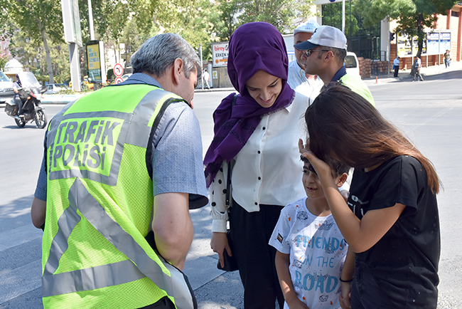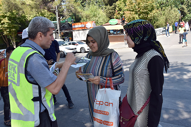 Ekipler, kırmızı ışıkta durmaları ve yeşil ışıkta geçmeleri yönünde yaklaşık 300 yayaya bilgilendirme çalışmasıyla beraber broşür dağıtımı yaptı.