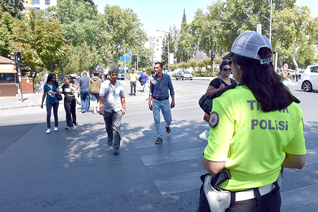 Kurallara uymayan yayalara 108 lira para cezası kesileceğini hatırlatan trafik ekipleri, kurallara uyan yayalara ise teşekkür etti.