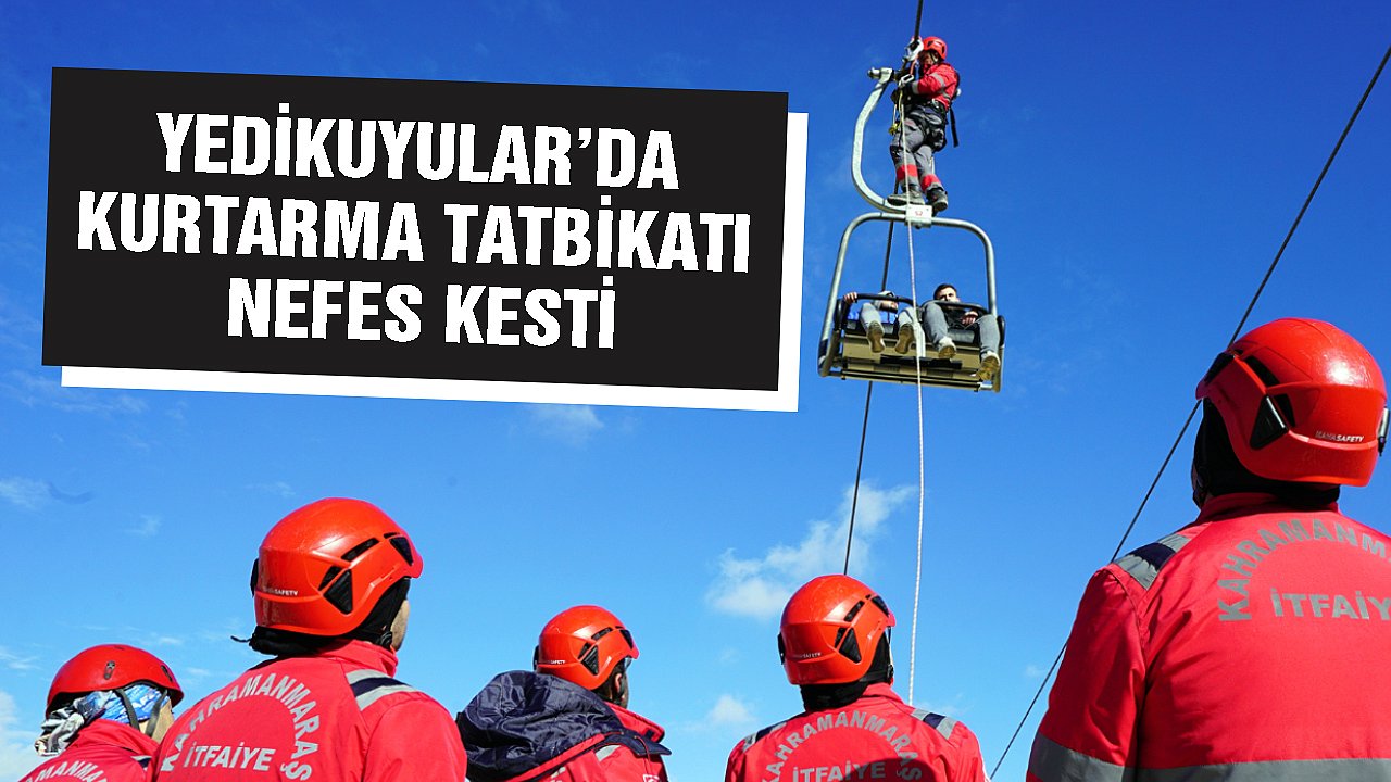 Kahramanmaraş Büyükşehir Belediyesi; afet ve acil durumlarda görevli personellerin becerilerini artırmak ve paydaş kurumlarla koordinasyonu sağlamak için faaliyetlerini sürdürüyor. Bu kapsamda Valilik koordinesinde Büyükşehir Belediyesi İtfaiyesi, Yedikuyular Kayak Merkezi Arama Kurtarma Ekibi, AFAD, Jandarma Arama Kurtarma (JAK), AKUT ve Akbel İş Sağlığı ve Güvenliği Ekibi iş birliğiyle Yedikuyular Kayak Merkezi’nde teleferik hatlarında arıza durumunda mahsur kalan vatandaşları kurtarmaya yönelik tatbikat gerçekleştirildi. Gerçeği aratmayan tatbikatta ekipler, senaryo gereği telesiyejde mahsur kalan vatandaşları halatlar yardımıyla güvenli bir şekilde yere indirdi. Zorlu tatbikatta ekiplerin uyumlu çalışması, hızı ve bilinçli müdahalesi ise takdir topladı.