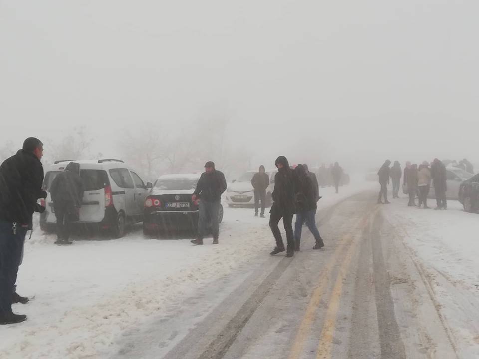 Yedikuyular bölgesinden dönmeye çalışan araçlar ise kayarak zincirleme kazalara sebep oldular.