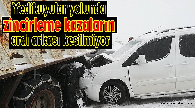 Kahramanmaraş Yedikuyular yolunda bugün meydana gelen zincirleme kazalarda yaklaşık 20 araçta maddi hasar meydana geldi.