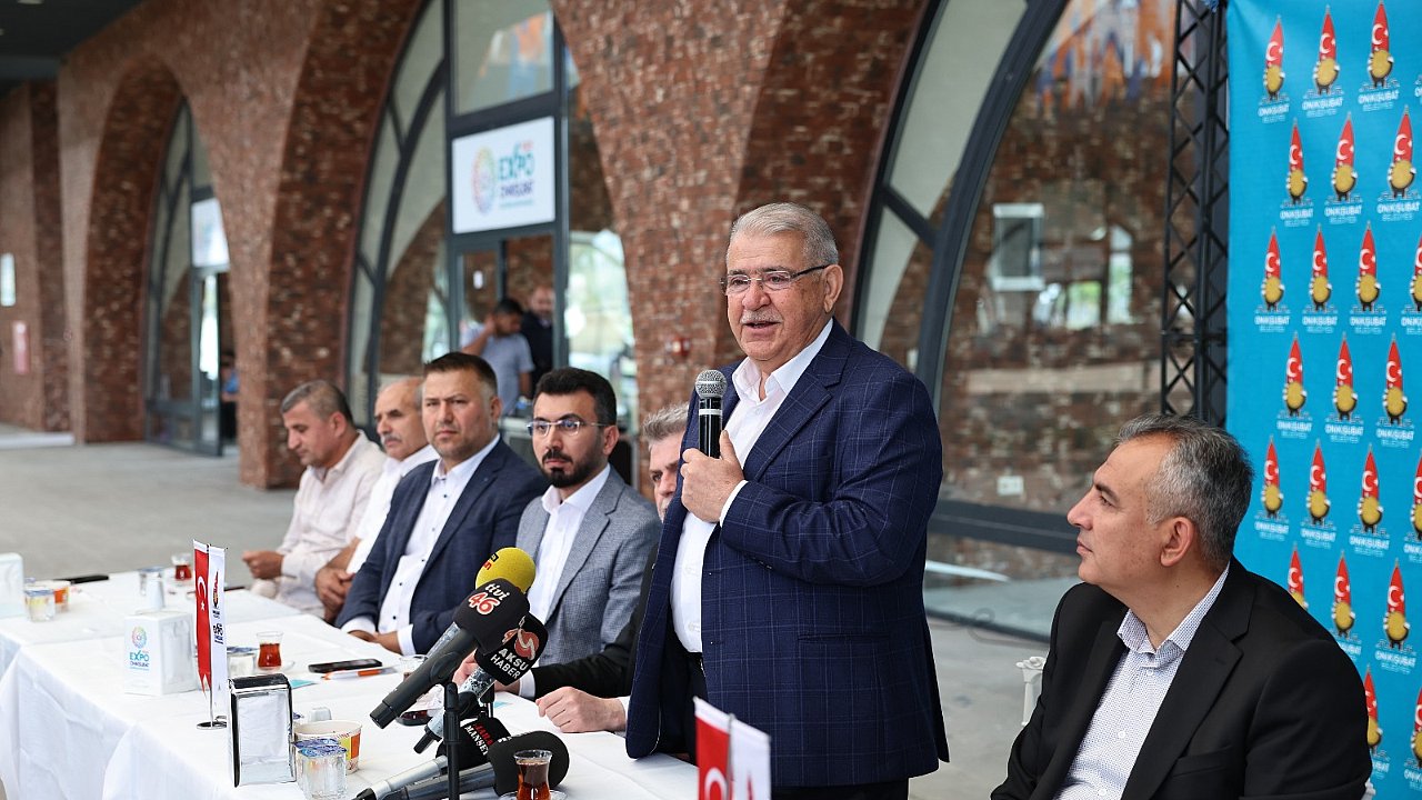 EXPO 2023 Sergi Alanı’ndaki Arasta Çarşısı’nda düzenlenen ‘Muhtarlar Buluşması’na Başkan Mahçiçek’in yanı sıra AK Parti Kahramanmaraş İl Başkanı Fırat Görgel, AK Parti Onikişubat İlçe Başkanı Mücahit Kara, muhtarlar dernek başkanları ve çok sayıda mahalle muhtarı katıldı.Muhtarları tek tek karşılayarak sohbet eden Başkan Mahçiçek, 14 ve 28 Mayıs’ta gerçekleştirilen Cumhurbaşkanı Seçimi’nde yüzde 78.83 oy oranıyla nüfusu 400 binden fazla olan 46 metropol ilçe arasında Onikişubat’ın birinci sırada yer alması dolayısıyla destekleri için mahalle muhtarlarına ‘teşekkür’ etti.Deprem sürecinde ve sonrasında yürütülen belediyecilik hizmetleri hakkında bilgi veren Başkan Mahçiçek, Onikişubat’ın Türkiye’nin en büyük ilçelerinden biri olduğunu ve belediye hizmetlerinin sunulmasında önceliklerinin mahallerin ihtiyaçları ve hemşerilerin istekleri olduğunu ifade etti.