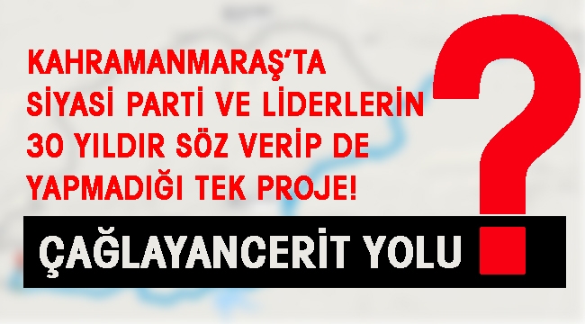 Kahramanmaraş'ta yaklaşık 30 yıldır siyasi parti ve liderlerinin her seçim döneminde söz verdiği ancak bir türlü yapılamayan Çağlayancerit ile Doğukent arasındaki alternatif yol yılan hikâyesine döndü. 3 farklı hükümetin 30 yılda çözemediği yol için vatandaşın sabrı çoktan taştı.HANİ İHALE AŞAMASINDAYDI?Çağlayancerit'i, Doğukent üzerinden Kahramanmaraş'a bağlayacak olan alternatif yolun projesi onlarca yıldır dillendiriliyor. Çağlayancerit, Nurhak ve 40'a yakın Bertiz köyünün kaderini değiştirecek bu yol için Karayolları tarafından birçok kez yapılan açıklamada, yatırım teklifi yapıldığı, ihale aşamasında olduğu belirtildi; ancak aradan geçen süre zarfında karınca kadar bile yol alınmadı.ESKİ MİLLETVEKİLİ REYHANLIOĞLU’NUN “3 HAFTAYA BAŞLAYACAK” DEMESİNİN ARDINDAN 1 YIL 4 AY 22 GÜN GEÇTİ!2016 yılında Kahramanmaraş'ta yapılan Ulaştırma Çalıştayı öncesi dönemin Karayolları 5. Bölge Müdür Yardımcısı Bülent Hacak, “Çağlayancerit’in alternatif yolunun da masaya yatırılması bekleniyor” demişti. 5 Temmuz 2017'de ise AK Parti 26. Dönem Kahramanmaraş Milletvekili Nursel Reyhanlıoğlu, Karayolları Şube Şefliğini ziyareti sonrasında, Kahramanmaraş – Çağlayancerit arasında ki 63 kilometrelik yolun yapımına 3 haftaya kadar başlanacağını yönünde sosyal medya hesabından paylaşım yapmıştı.MİLLETVEKİLİ KILIÇ “PROJESİ TAMAMLANDI” DİYELİ 1 YIL 2 AY 19 GÜN OLDU!AK Parti Kahramanmaraş Milletvekili İmran Kılıç, 8 Eylül 2017 tarihinde yaptığı bir açıklamada “Bu yolumuzun projesi tamamladı ve ihale aşamasındadır. Özellikle ilk 20 kilometresi olmazsa olmaz diyebileceğimiz bir konumdadır. Kahramanmaraş Havaalanı kavşağından Doğukent’e oradan da Ayvalı Barajı’na kadar olan bölüm için bir projemiz var. Bu yolun çift gidiş geliş şeklinde yapılması, ilimiz açısından ve şehrimizin doğusunun gelişimi açısından çok önemlidir. Bu yol daha sonra Çağlayancerit'e bağlanacaktır” ifadelerine yer vermişti.29 Haziran 2019'da ise Kahramanmaraş’ın Dulkadiroğlu ile Çağlayancerit İlçeleri arasına yapılması planlanan kara yolu noktasında TBMM İçişleri Komisyon Başkanı ve AK Parti Kahramanmaraş Milletvekili Celalettin Güvenç ise Karayolları Bölge Müdürlüğü ekiplerini kente davet ederek, çalışmaların hızlandırılması, kamulaştırma ve diğer sorunların çözümü noktasında nasıl bir yol izleneceği konusunda toplantı organize etmişti.Çağlayancerit’i Doğukent üzerinden Kahramanmaraş’a bağlayacak olan alternatif yol; Nurhak, Çağlayancerit, 40’a yakın Bertiz nüfusu ve yüzde 80’i kuzey bölgelerinden gelen yüzbinlerce Dulkadiroğlu nüfusunu yakından ilgilendiriyor. Artık yılan hikayesine dönen ve her seçim dönemi siyasilerin ağızlarına sakız yaptığı Çağlayancerit yolu noktasında artık vatandaşların sabrı tükendi. Vatandaşlar bir an önce Çağlayancerit yolu için somut bir adım atılmasını istiyor.VATANDAŞ MERAK EDİYOR: YOL NE DURUMDA VE NE ZAMAN YAPILACAK?Kahramanmaraş’a en yakın ilçelerden olan Çağlayancerit, ulaşımını Pazarcık Gölbaşı istikametindeki, uzun yolla sağladığı için ulaşım problemi yaşıyor. Doğukent üzerinden ulaşım sağlanan yol ise onlarca köy içerisinden geçiyor ve bölgede S çizerek devam ediyor. Halk böyle olunca da yol kış aylarında olumsuz hava koşullarında kullanılamıyor. Çağlayancerit ve Bertiz köylerinin yaklaşık 30 yıldır dillendirdiği ancak bir türlü yatırım programına alınmayan, Çağlayancerit’i Doğukent üzerinde Kahramanmaraş’a bağlayan alternatif yolu halk merakla bekliyor.2016 yılının ilk Koordinasyon Toplantısı’nda konuşan dönemin Kahramanmaraş Karayolları 5. Bölge Müdür Yardımcısı Bülent Hacak, söz konusu yolla ilgili yatırım programına alınması için teklif yapıldığını belirterek şöyle konuştu: “Çağlayancerit’e maraş istikametindeki yolumuzla ilgili çalışmamız var. Emanet ve ihaleli olarak proje çalışmalarını hemen hemen tamamladık sayılabilir. İhale yapmamızla ilgili keşifleri bu projeden çıkarabiliriz. Yatırım programına teklifi yapıldı. Yatırım programına alınması durumunda bununla da ilgili çalışmalar yapılacak. Yollarımız, ödenekler nispetinde daha hızlı yapılır. Bana ne kadar ödenek verirseniz; ben o kadar çalışabiliyorum. Biz, yapacağız inşallah. Ama iki yılda bitmez; üç yılda biter. Bir güzel haber daha! Orada eksik köprülerimiz vardı. Onların da proje ihaleleri de bu hafta içinde netleşecek.”ÇAĞLAYANCERİT’İN TEK KURTULUŞU!Çağlayancerit halkının, “Çağlayancerit’in tek kurtuluşu” olarak gördüğü Çağlayancerit-Doğukent arasındaki yolun yapılmasıyla, hem Çağlayancerit’in kaderi değişecek hem de bölgede hareketlilik başlayacak. Bugün geniş katılımla Kahramanmaraş’ta yapılacak olan Ulaştırma Çalıştayı’nda, Çağlayancerit’in alternatif yolunun da masaya yatırılması bekleniyor.'' Bu açıklamalar 2016 yılında yapılmıştı. Aradan geçen zaman nerede ise 3 yıl olmak üzere ancak yolun yapılmasını bir kenara bırakın ortaya somut bir proje bile konulmadı. Dönemin AK Parti Kahramanmaraş Milletvekili Nursel Reyhanlıoğlu ise 5 Temmuz 2017 günü sosyal medya üzerinden yaptığı bir paylaşımda, Karayolları Şube Şefliğini ziyaret ettiğini ve Kahramanmaraş – Çağlayancerit arasında ki 63 kilometrelik yolun yapımına 3 haftaya kadar başlanacağını ifade etmişti. Reyhanlıoğlu, ayrıca Bertiz ile Beşenli yolunun da bu yol ile bağlanacağını söylemişti. Vatandaşlar bu yolların tamamlanması ile birlikte Çağlayancerit ile ulaşımın daha kısa sürede tamamlanacağını ve daha düzgün bir yol kullanacaklarını düşünerek, çalışmaların tamamlan