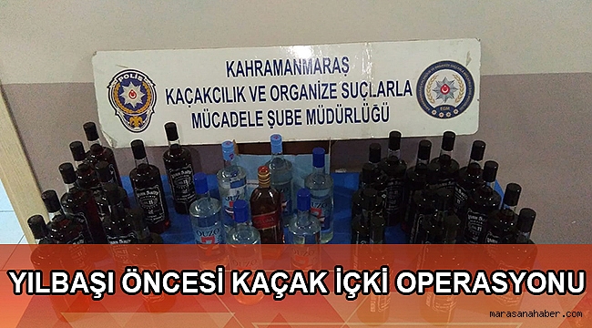 Kahramanmaraş il merkezi ve Elbistan İlçesinde polis ekipleri tarafından yılbaşı öncesinde alkollü içki kaçakçılığı-sahteciliği ile mücadele kapsamında sahte kaçak alkollü içki satışının, imalatının deşifre edilmesine yönelik eş zamanlı 11 işyerinde ve ikamette operasyon yapıldı. Operasyonda 6 şişe kaçak rakı,25 şişe kaçak viski,17 şişe doldurulmuş sahte rakı,9 kilo kıyılmış tütün ele geçirildi. Operasyon kapsamında 8 şüpheli gözaltına alındı.