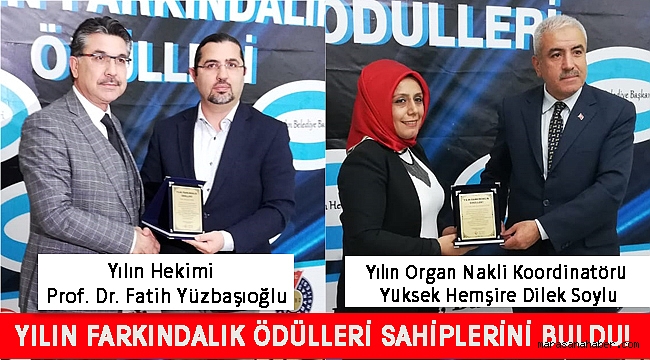 Kahramanmaraş Böbrek ve Diyaliz Hastaları Yardımlaşma ve Dayanışma Derneği (KABÖDER) ve Kahramanmaraş Sütçü İmam Üniversitesi’nin (KSÜ) ortaklaşa düzenlediği Organ Bağışında Yılın Farkındalık Ödülleri sahiplerini buldu. KABÖDER tarafından her yıl 03-09 Kasım Organ Bağışı Haftası kapsamında düzenlenen organ bağışı etkinliklerine destek veren kişi ve kuruluşlar ödülünü aldı. Pınarbaşı Çınar Kasr’ında Naz Güzel'in sunumunu yaptığı programda verilen Yılın Farkındalık Ödülleri çerçevesinde Kahramanmaraş Sütçü İmam Üniversitesi (KSÜ) Genel Cerrah Anabilim Dalı Başkanı Prof. Dr. Fatih Yüzbaşıoğlu, son zamanlarda yaptığı başarılı nakiller dolayısıyla yılın hekimi ödülüne layık görüldü. Yüzbaşıoğlu’nun ödülünü Kahramanmaraş Büyükşehir Belediyesi Sivil Toplum Kuruluşları Şube Müdürü Yaşar Kaymak verdi.Yılın Organ Nakli Koordinatörü Ödülü ise KSÜ Organ Nakli Koordinatörü Yüksek Hemşire Dilek Soylu’nun oldu. Soylu’ya plaketini ise Kahramanmaraş Büyükşehir Belediyesi Başkan Vekili Muharrem Erantepli verdi. Gecede ödül alan diğer kuruluş ve isimler şöyle:Yılın Basın ve Medya Ödülü - Maraş Ana Haber İmtiyaz Sahibi Kenan Onaran,Yılın Basın ve Medya Ödülü – Anadolu Ajansı Kahramanmaraş Temsilcisi İsmail Hakkı DemirYılın Basın ve Medya Ödülü – AKSU TV Haber Müdürü Nesibe HançerYılın Basın ve Medya Ödülü – Maraş Fısıltı Gazetesi İmtiyaz Sahibi Ali KeklikYılın Basın ve Medya Ödülü – Kahramanmaraş’ta Bugün Gazetesi Genel Yayın Yönetmeni Mesut Tuğrul