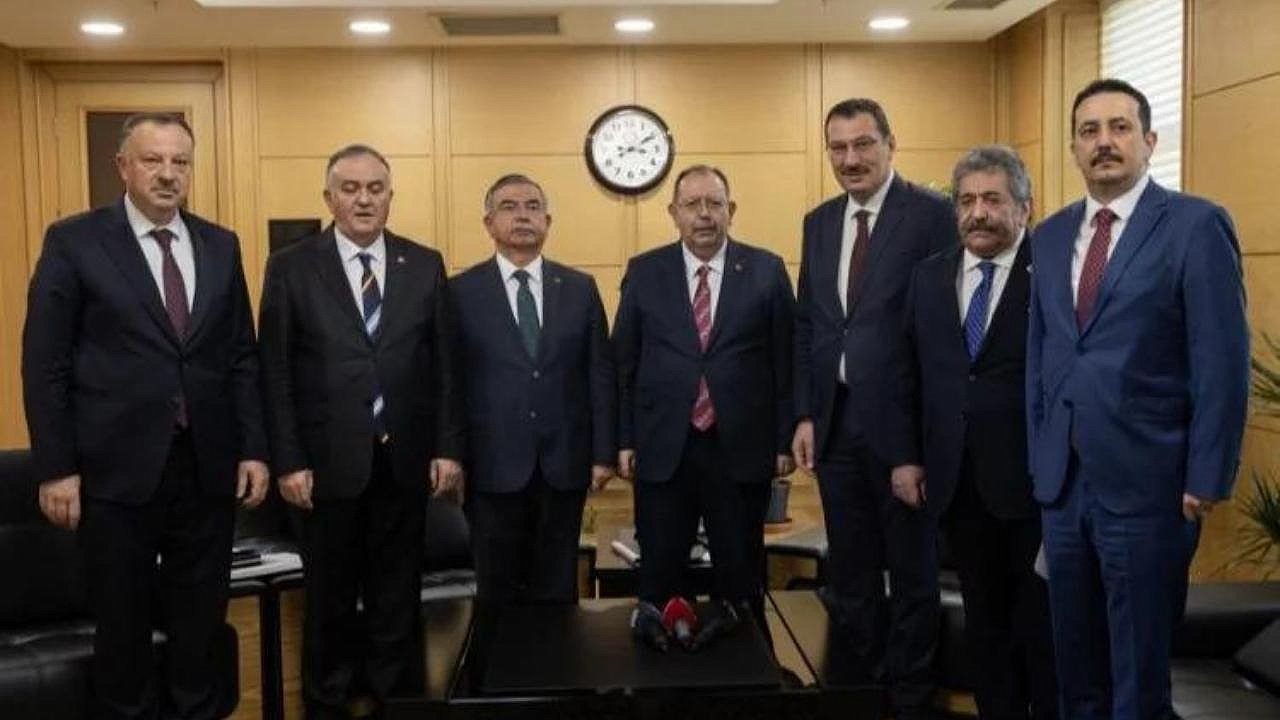 Cumhurbaşkanı Erdoğan'ın adaylığı için AK Parti Grup Başkanı İsmet Yılmaz, AK Parti Genel Başkan Yardımcısı ve Seçim İşleri Başkanı Ali İhsan Yavuz, MHP Grup Başkanvekili Erkan Akçay ve MHP Hukuk ve Seçim İşlerinden Sorumlu Genel Başkan Yardımcısı Feti Yıldız YSK'ye yaptığı müracaat sonrası gazetecilerin sorularını yanıtladı.